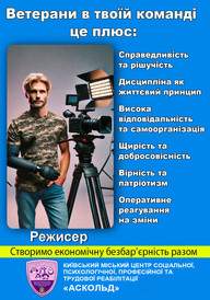Київський міський центр соціальної, психологічної, професійної та трудової реабілітації «Аскольд» розпочинає інформаційну кампанію, спрямовану на формування позитивного ставлення роботодавців до ветеранів та ветеранок.